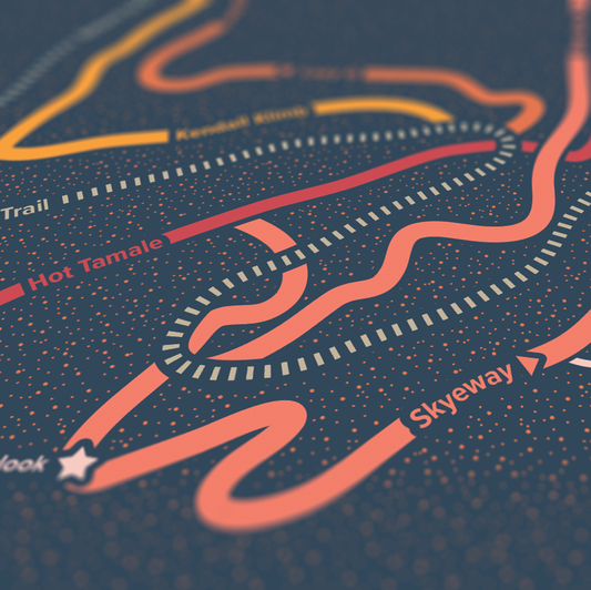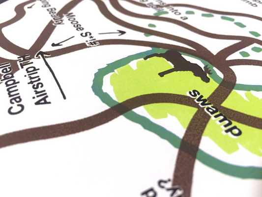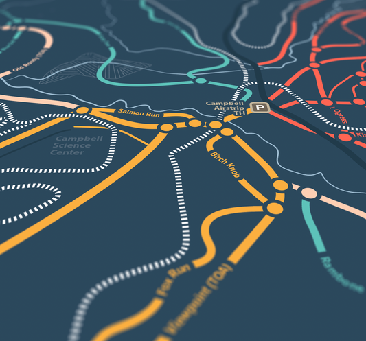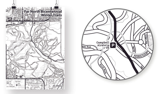 Maps and illustrations of trail systems in Southcentral Alaska by Aurora Hablett.